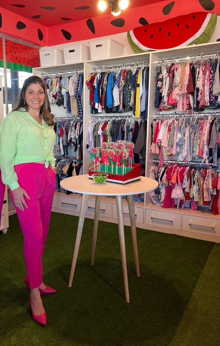 Hoje tenho duas lojas físicas e uma unidade móvel - e tudo começou vendendo roupas usadas dos meus filhos.