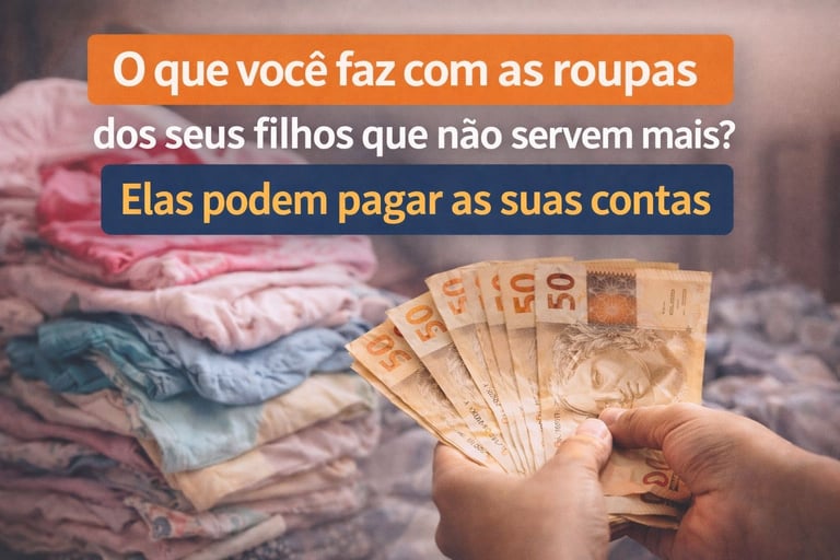 Você também pode transformar roupas infantis usadas em dinheiro, sem precisar montar um brechó e sem investimento.